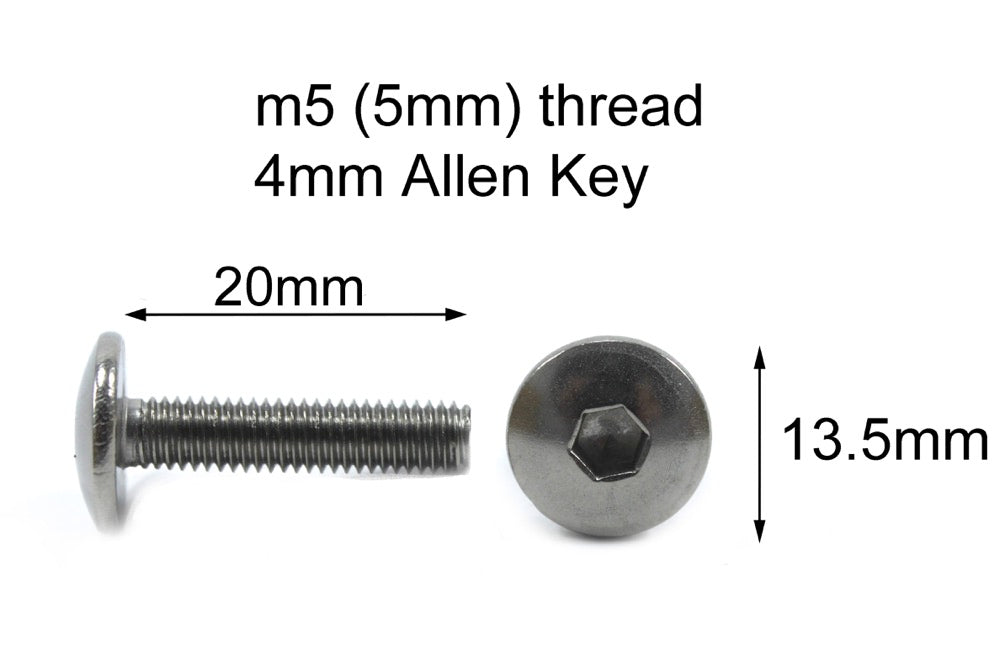 This kit features high quality Stainless Steel Pan Head Bolts with a head diameter of 13.5mm (m5) and 14mm (m6). These bolts are Stainless Steel which are better than standard zinc plated bolts as they won't rust and have a shine that lasts for years.