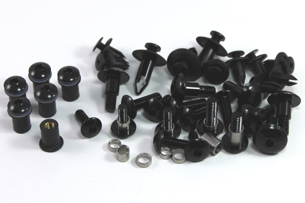 This kit is designed to replace all the visible external fairing & screen bolts with black anodised aluminium bolts.