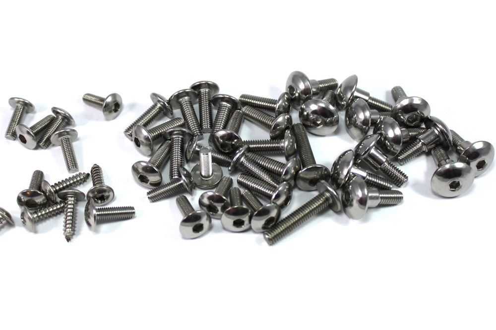 This kit is designed to replace all the visible external fairing & screen bolts with nice shiny stainless steel bolts. This kit is designed to replace all the visible external fairing & screen bolts with nice shiny stainless steel bolts. This kit provides bolts and clips to replace the original Dzus Fasteners if required.