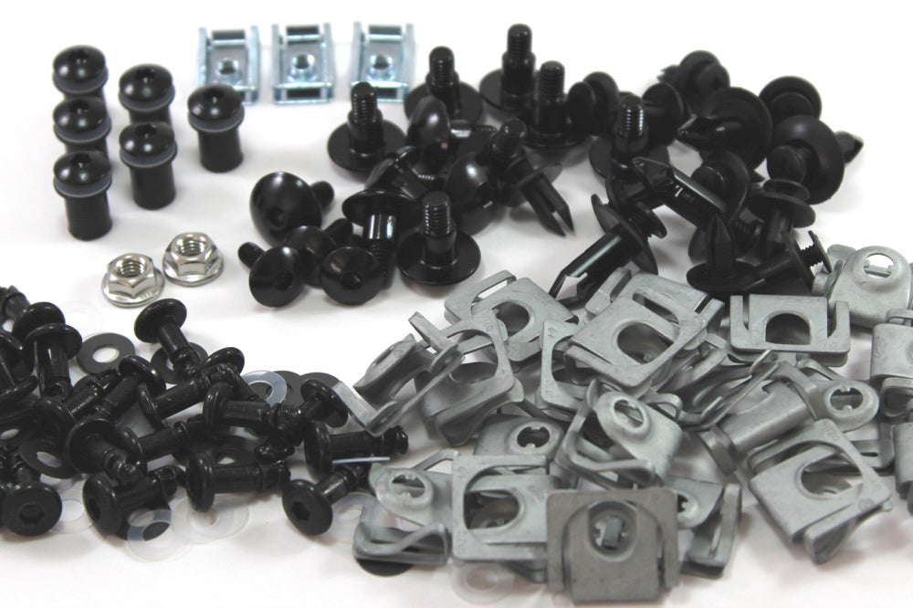 Please note the pictures above are generic. They best represent the kit but the quantities will be different. No actual fairing panels are included, only fixings!