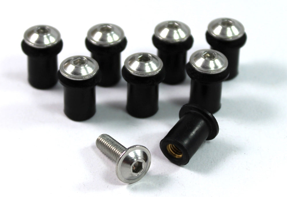 This kit features high quality Stainless Steel pan head bolts with a head diameter of 13.5mm (m5) and 18mm (m6). These bolts are Stainless Steel which are better than standard zinc plated bolts as they won't rust and have a shine that lasts for years. This kit also replaces the Dzus Fasteners on the right hand fairing panel. We supply Genuine Dzus Fasteners with a crosshead, washers and fresh backing clips.