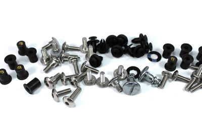 Honda Motorcycle fairing Fasteners in Stainless Steel. Includes bolts, screws, washers, spring clips, grommets, rubber well nuts.
