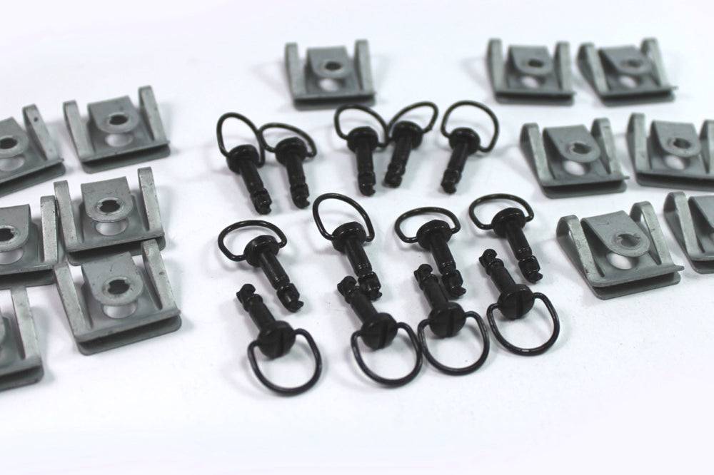 17 Piece Kit - This kit will replace 7 fixings on each side and 3 on the belly pan, to enable rapid fairing removal. The 4 bolts and well nuts that hold the upper and lower fairings remain.Please note we now supply 6mm Dzus for the 2 fixings each side that have a larger hole in the fairing.
