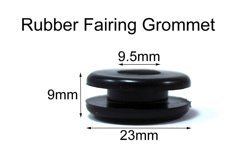 The grommets have an outer diameter of 23mm and are designed to work section with a pan head bolt with an 8mm or 10mm shoulder. Please visit our Fairing Bolts section to purchase these bolts.
