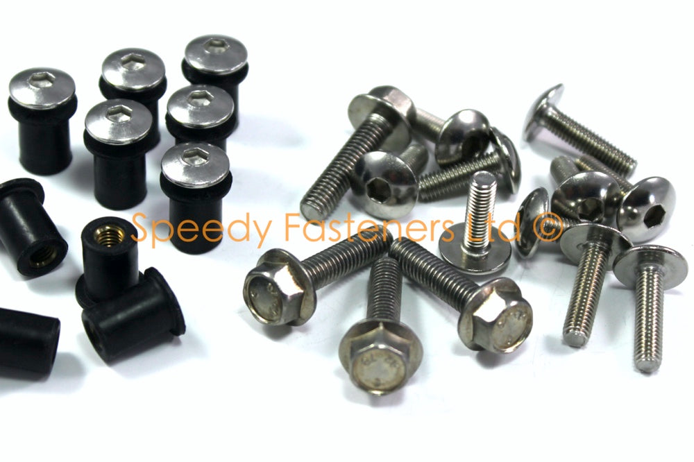 Please note the pictures above are generic. They best represent the kit but the quantities will be different. No actual fairing panels are included, only fixings!