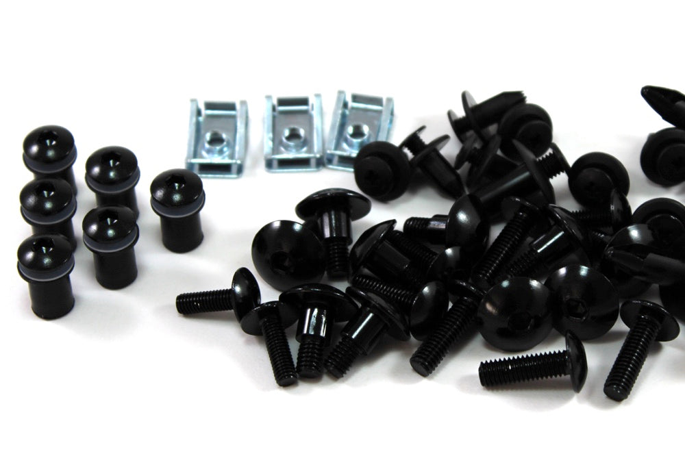 This kit will change/replace the existing main fairing bolts for black aluminium bolts and replace the screen fixings/well nuts and bolts.