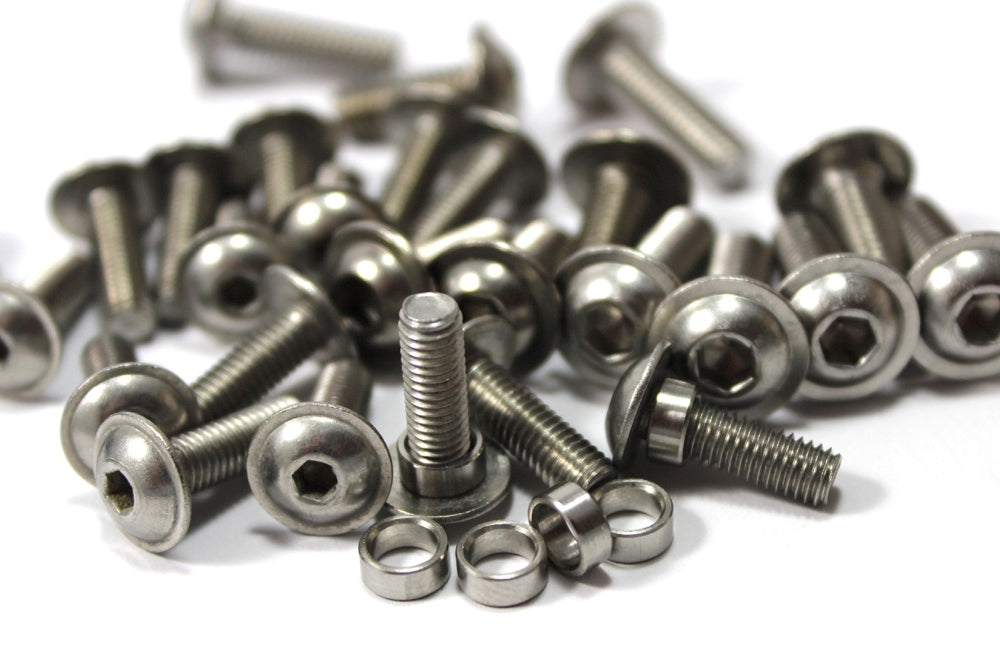 This kit will replace the bolts securing the upper and lower main fairings, hugger, rear fairings as well as the front screen to the nose cone.