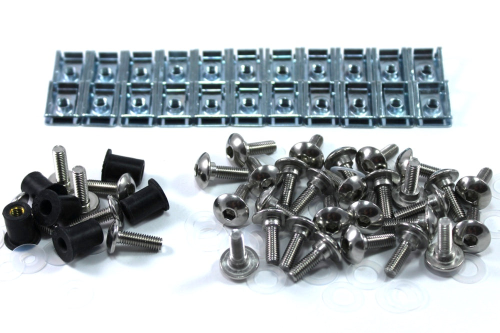 This kit is designed to replace all the visible external fairing & screen bolts with nice shiny stainless steel bolts.