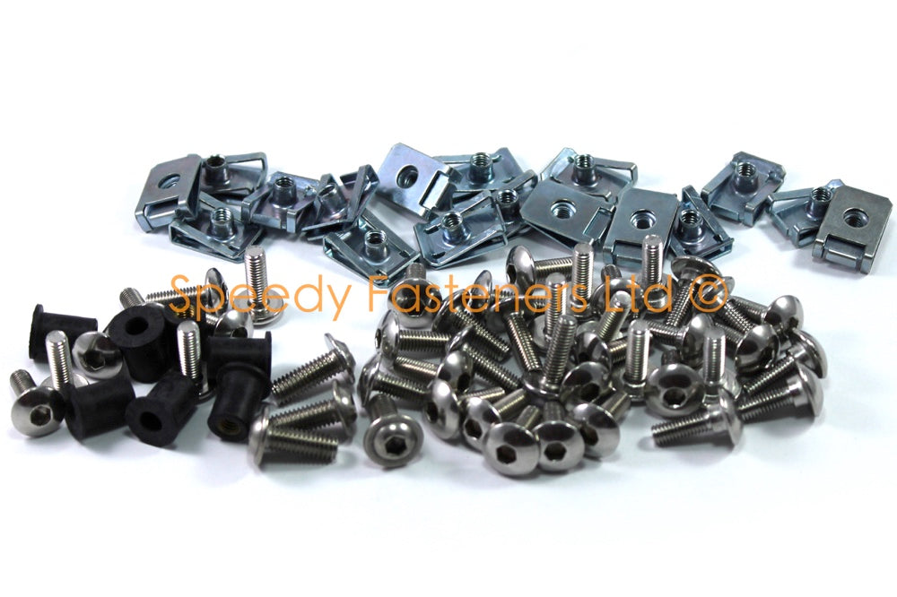 Please note the pictures above are generic. They best represent the kit but the quantities will be different. No actual fairing panels are included, only fixings!