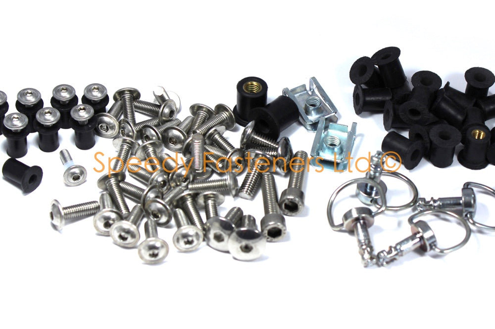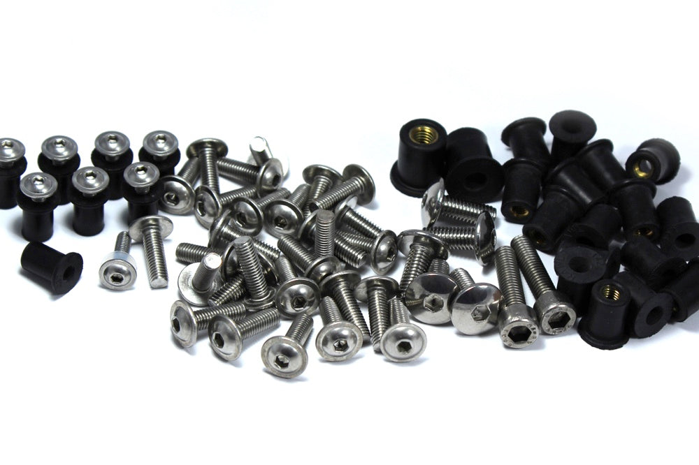 This kit will replace the bolts securing the upper and lower main fairings, rear fairings as well as the front screen to the nose cone.